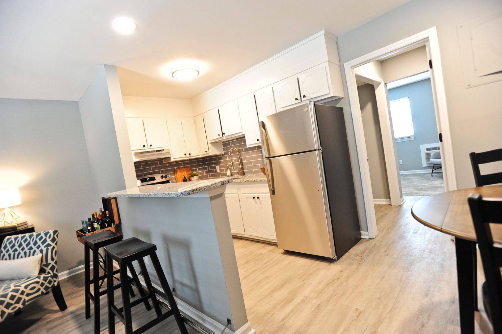 This studio apartment is a first-floor unit in a small 18-unit complex of one-bedroom and studio units. Ideally located near downtown WS, the West End area of W-S, the I-40 highway, and our Dash baseball stadium. Tenants love the mix of residential houses on either side of this charming apartment building. Kitchens feature large sinks and granite, stainless appliances, and LVP flooring in the living space, kitchen and bathroom. Avoid the congestion of large complexes and enjoy getting to know neighbors in a smaller community. There is plenty of parking and ample places to stroll along Spring Street. See photos for decorating ideas. If you love baseball and walkable dining, then this location is ideal!