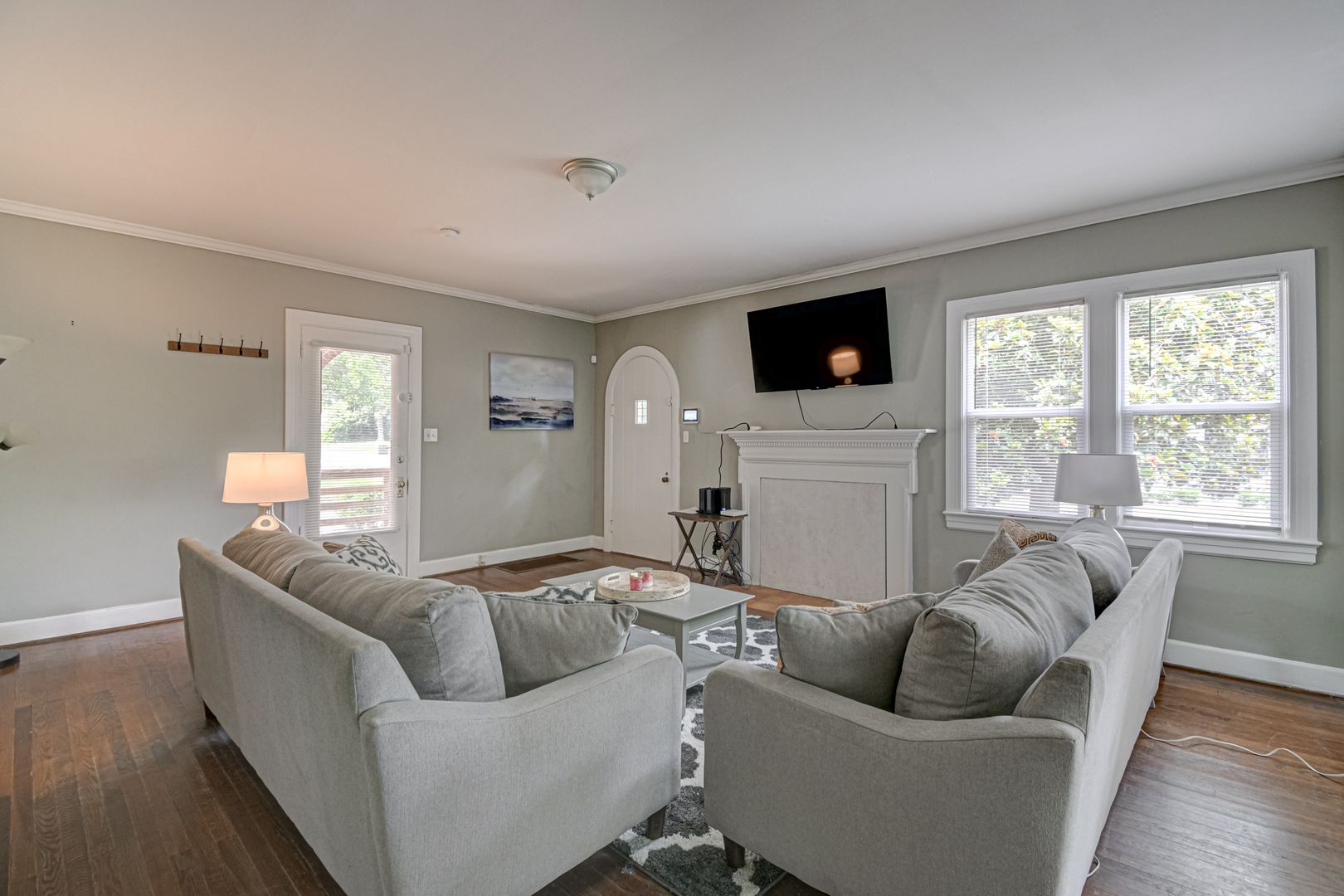 The home comes fully furnished, with a dining room, main-floor living, and granite kitchen countertops, making moving a breeze. Enjoy relaxing on the open-air porch and framed wood side deck off the kitchen or hosting gatherings in the backyard. Stay entertained with the 55" Smart TV included, and rest easy knowing that utilities are also included. The washer and dryer are in the unfinished basement, with windows and an outside door entrance to the backyard.