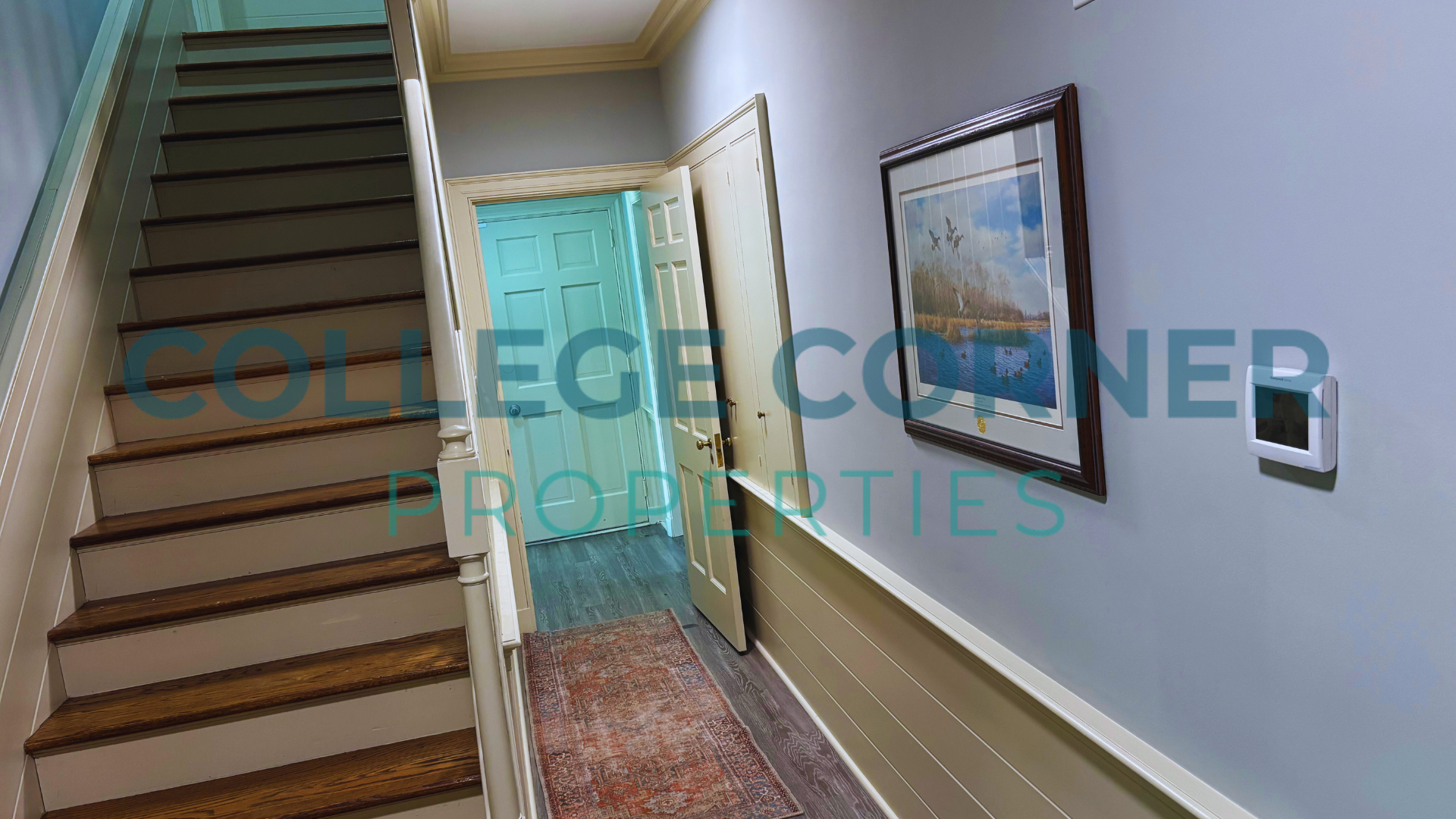 The original staircase in the center hall leads to the second floor, which includes three spacious bedrooms and two bathrooms. All bathrooms have been remodeled while maintaining the house's original design.