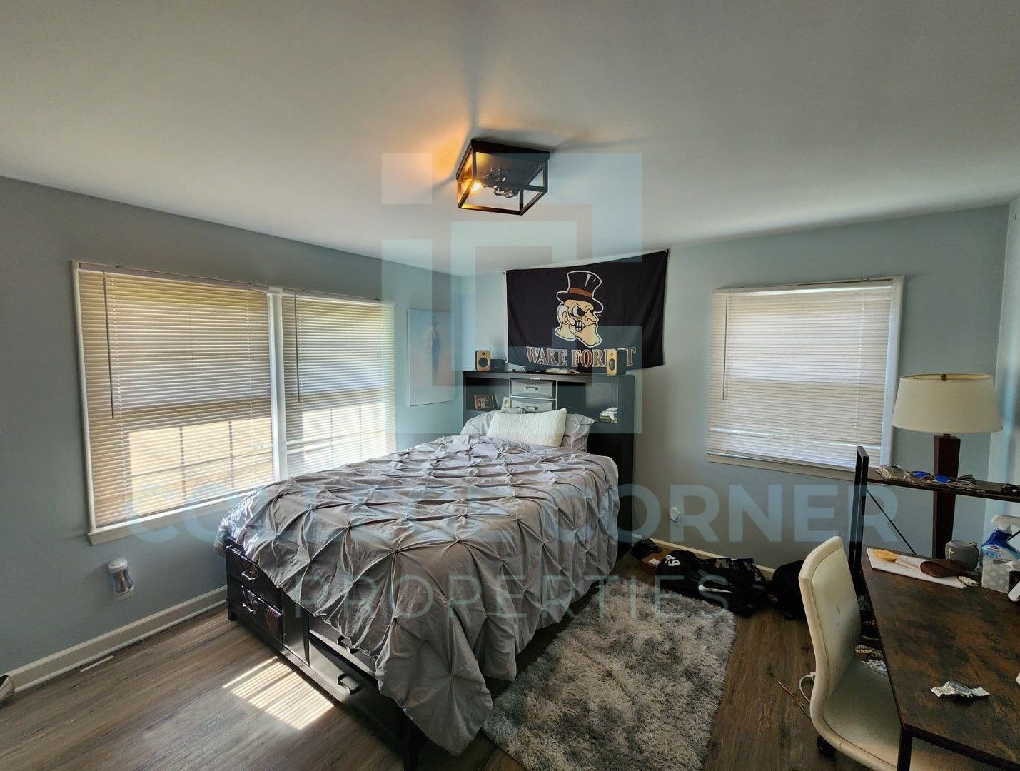 Great yard for entertaining, lounging, and throwing a football. This Brookwood Dr 4-bedroom, 3-bath brick ranch-style home features a fenced-in yard and a covered patio. It has new hardwood floors and comes fully furnished, including all kitchen essentials and a 55-inch TV. Each bedroom is equipped with a queen bed, a nightstand, a dresser, and a desk. This fully furnished home is perfect for any group looking for a well-appointed home near WFU, WWS, UNCSA, Carolina University, and Carolina Christian College. Ideal for graduate students, corporate rentals, or undergraduate groups of 4 or a family.
