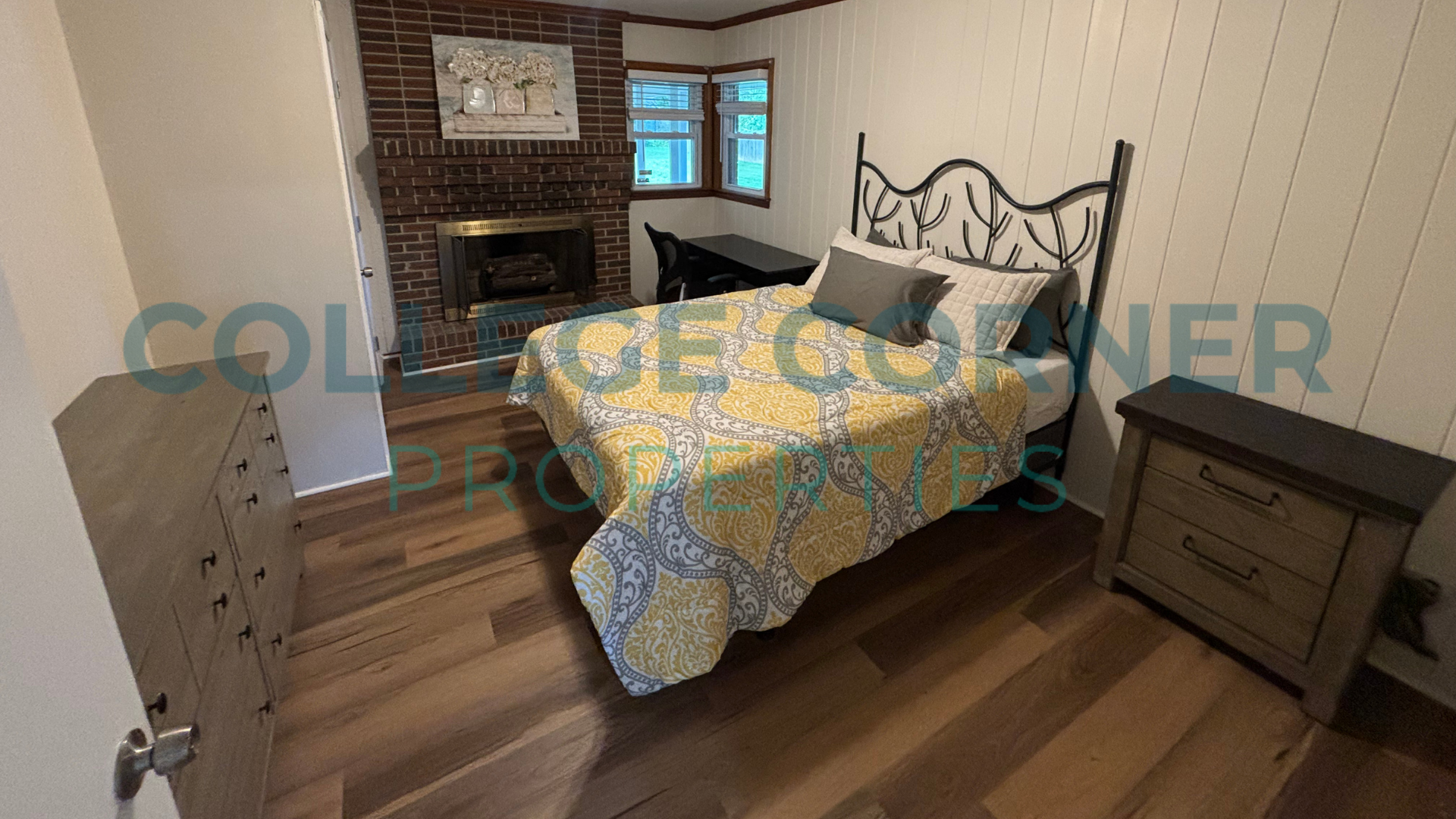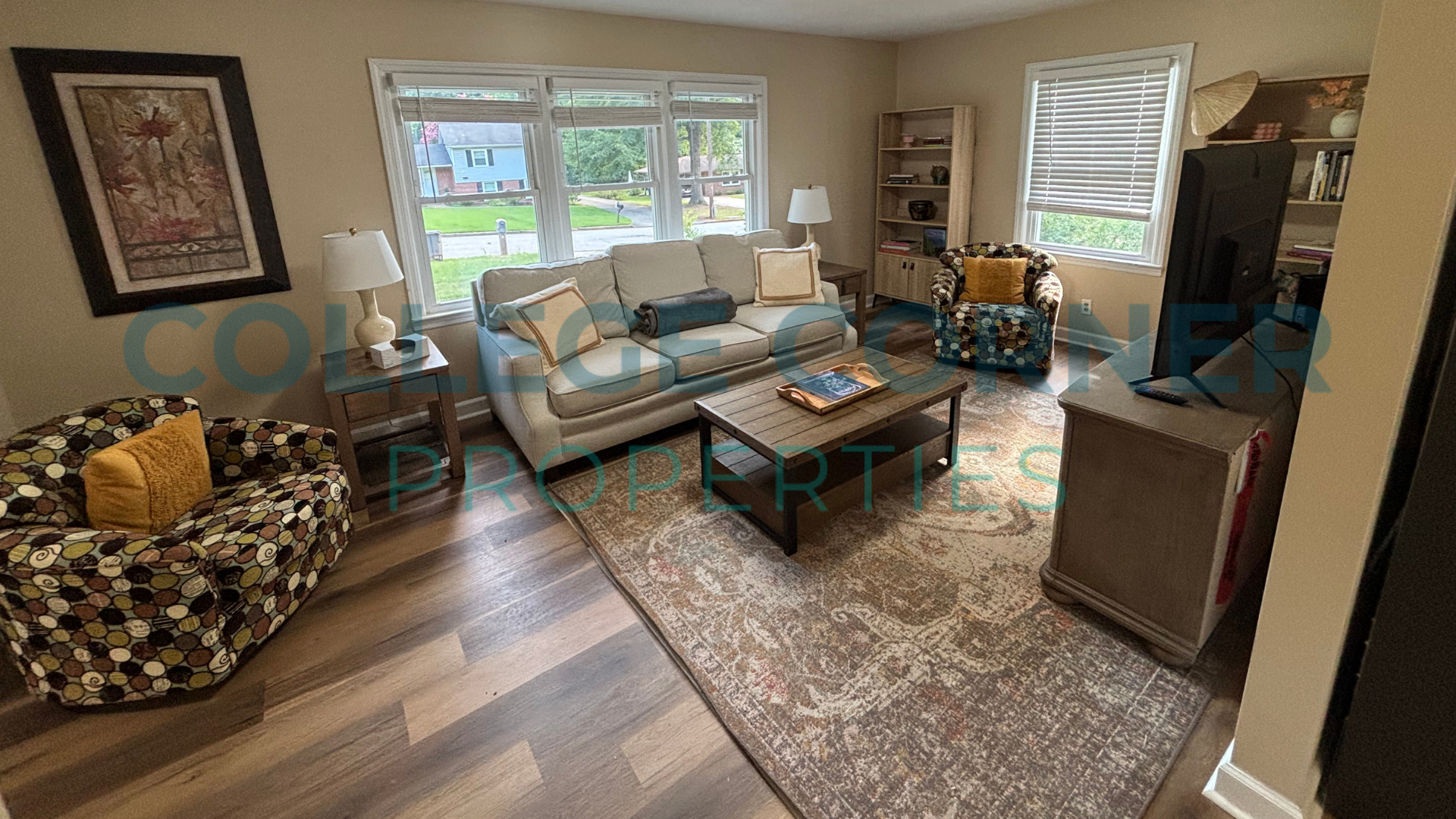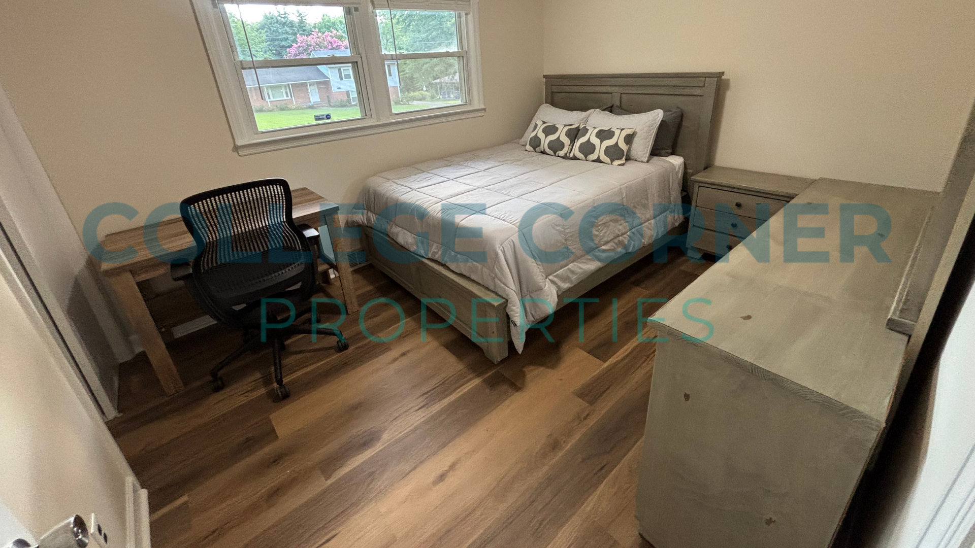 All four bedrooms have designer-inspired Queen-sized Beds and a Nightstand, Dresser, and Desk, setting the stage for you to bring your style. The home has no carpet; new LVP flooring and paint have been updated in 2024. The large kitchen has ample cabinets, granite counters, stainless appliances, and an eat-in kitchen. The open floorplan refers to the main living space, offering a sofa, roomy club chairs, TV cabinet, and additional furniture.