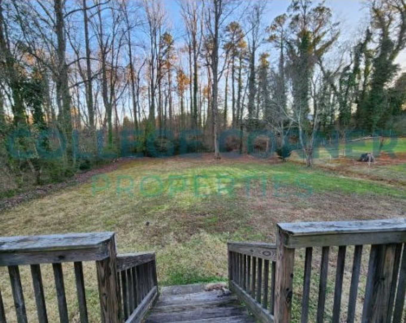 There is a small deck at the back of the house. Parking can be on the side driveway and behind the home, just minutes from WFU! Ideal for graduate students, corporate rental, or undergraduate groups of 4. This fully furnished home is perfect for any group looking for a well-appointed home near WFU, WSSU, UNCSA, and Carolina University.