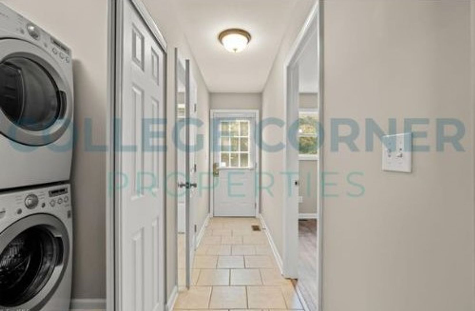 One-level living with four bedrooms and two bath home featuring hardwood floors and tile throughout. Modern kitchen with tile backsplash, granite countertops, and stainless appliances. Laundry with stackable washer/dryer. It is an ideal location with easy access to the university and local amenities. The house is fully furnished and move-in ready! All bedrooms have Queen-sized beds with desks, a nightstand, and a dresser. One Roku TV is included in the living space, which features two sofas. Great yard for entertaining, lounging, and throwing a football.