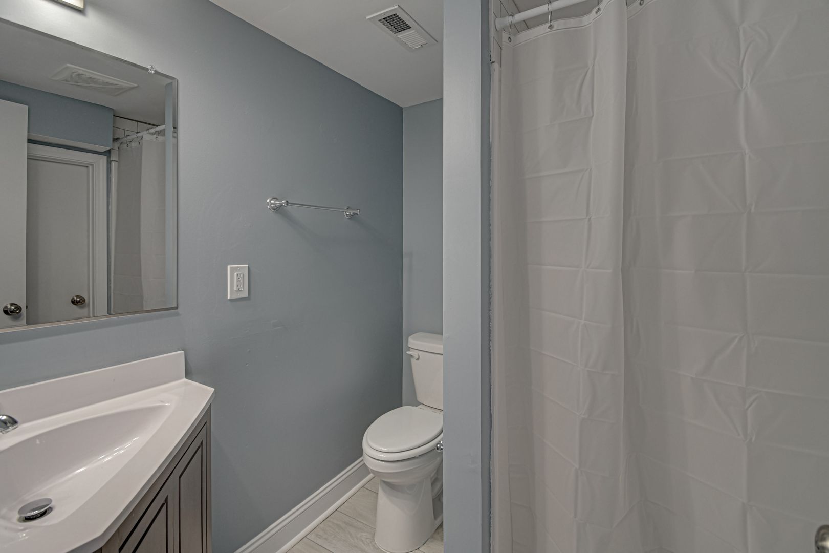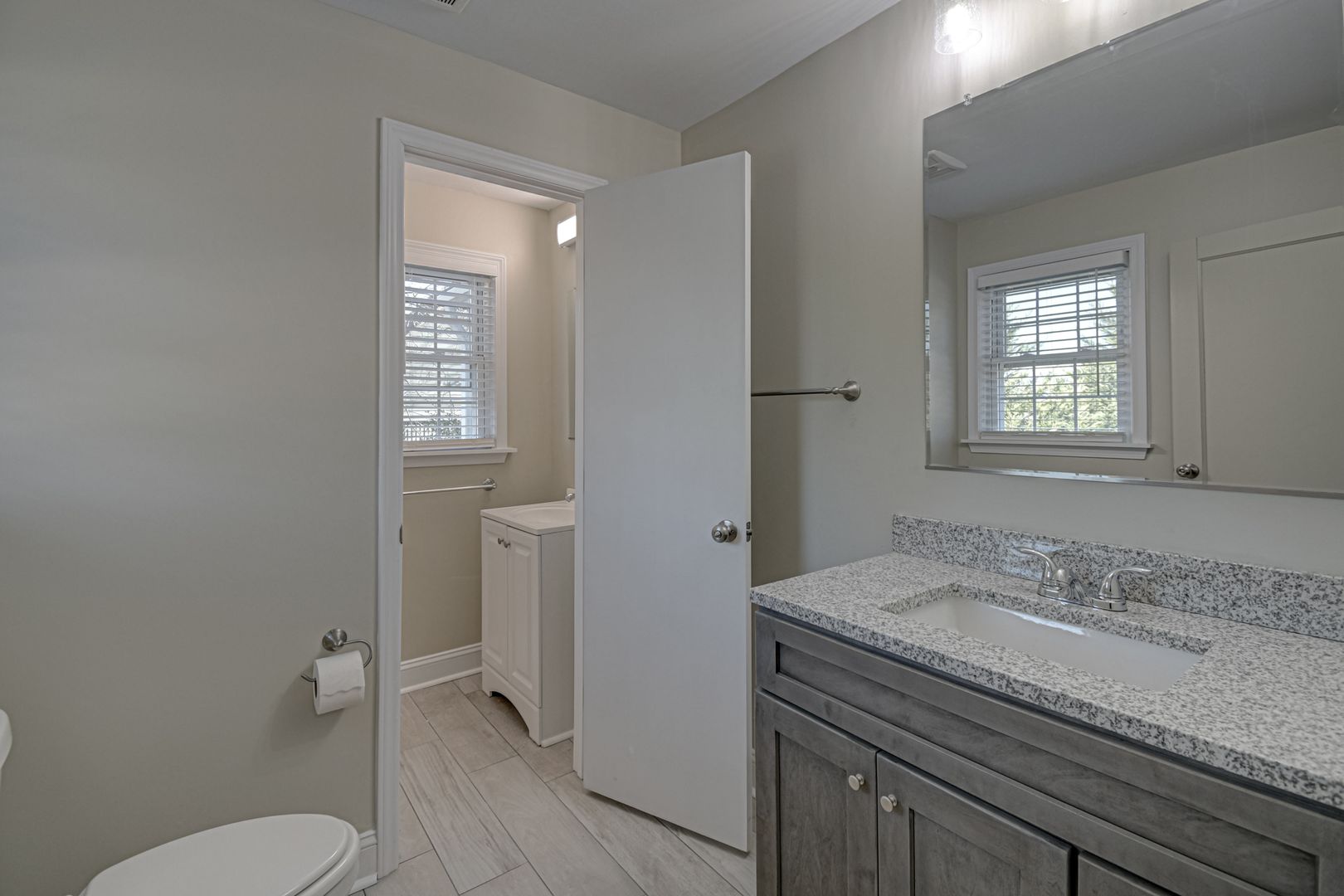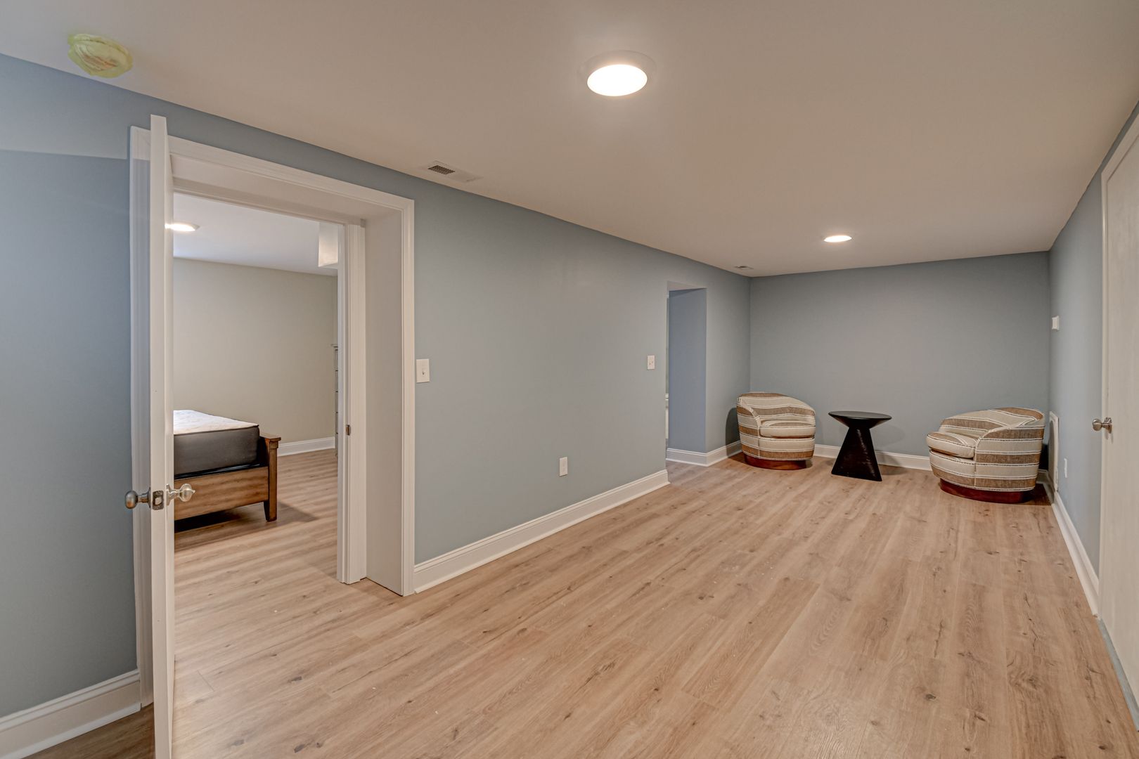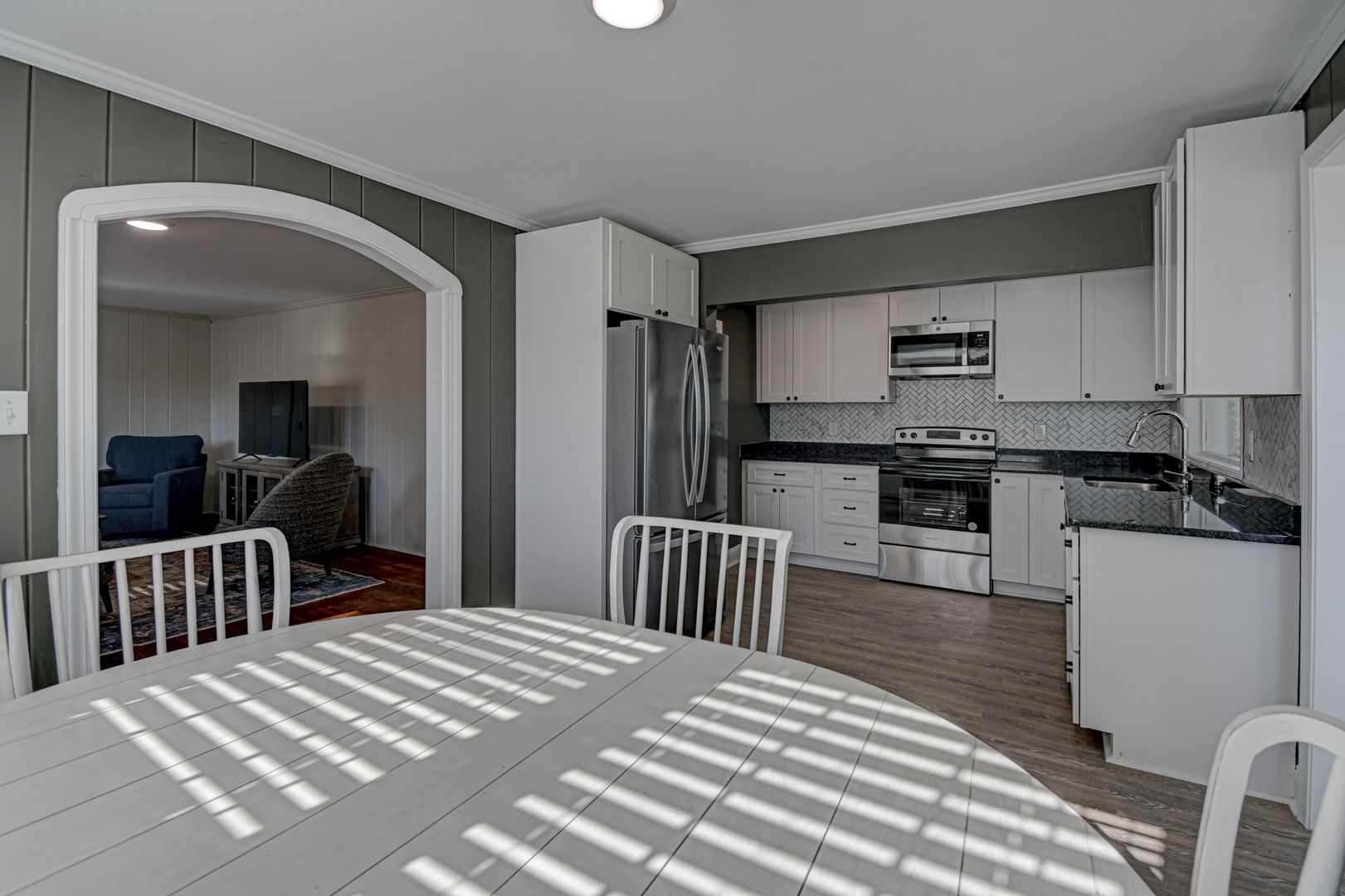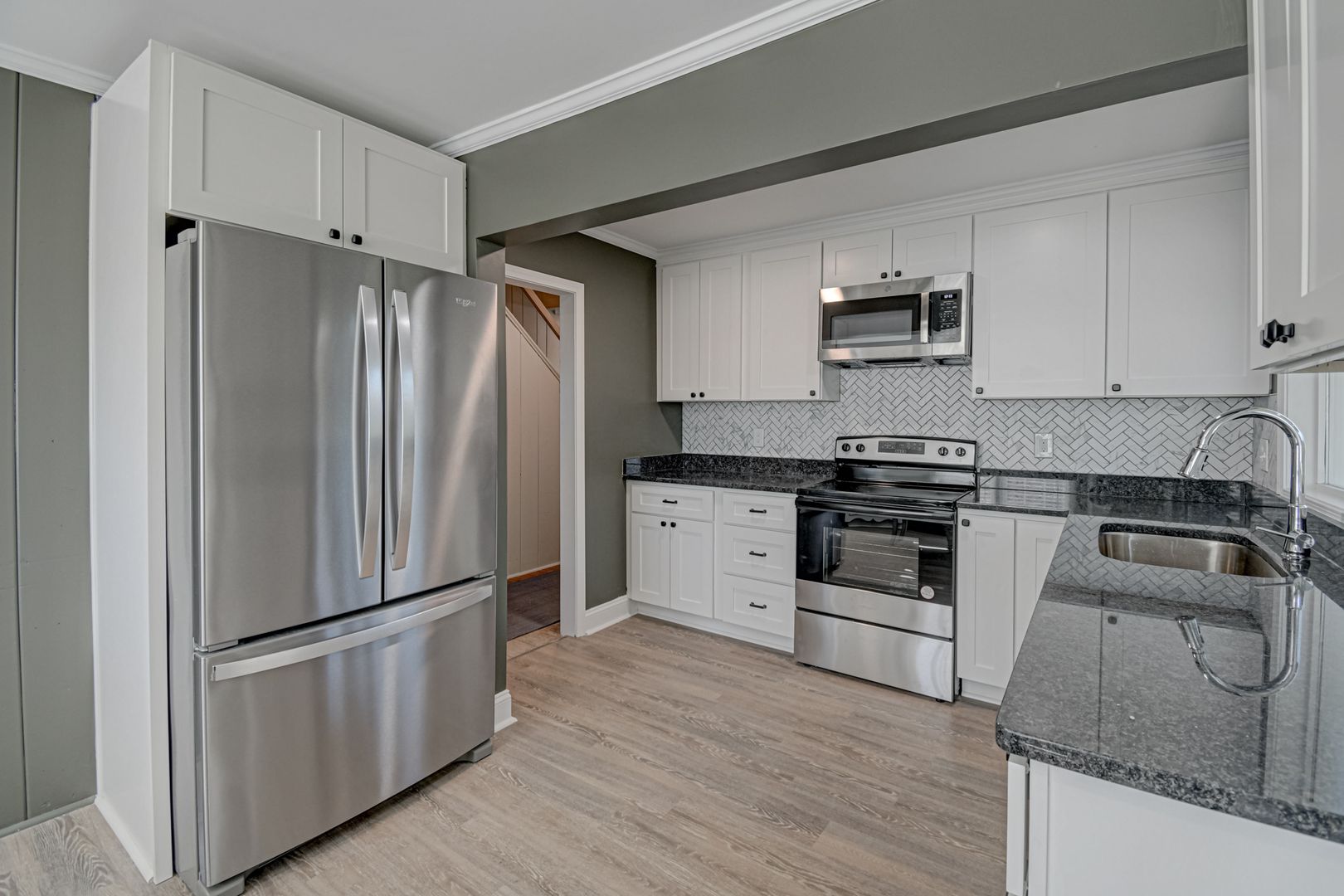Enjoy the modern feel of a completely remodeled kitchen, granite counters, custom tiled backsplash, and stainless steel appliances. While small appliances like a coffee maker, blenders, etc, are not provided, most essential kitchen items are provided. Flooring styles vary, with carpet only on the stairs and new LVP flooring throughout the home. In some places, original hardwoods are still present. The fully renovated lower level features an additional bedroom, a convenient washer/dryer, a full bath, and a large media room, providing extra privacy and space. This space enjoys natural light from the backyard, plus an entrance door. The home sits on an ideal street near WFU and features a large backyard.