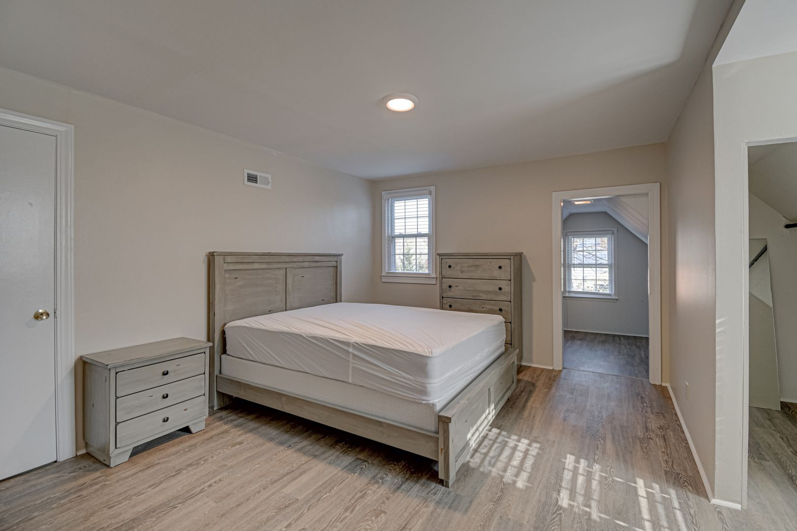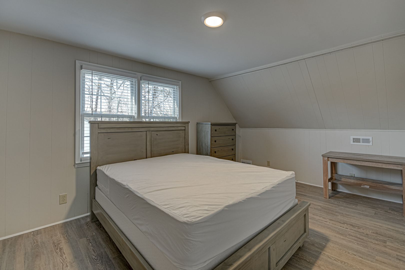 Each bedroom is thoughtfully designed with a queen bed, nightstand, dresser, and desk, ensuring a cozy and functional living environment. Two bedrooms enjoy dormer-style windows upstairs with a shared bathroom and bonus storage closet, and take advantage of the convenience of washer/dryer units located both upstairs and lower level. One main-floor bedroom is across the hall from the primary bathroom.
